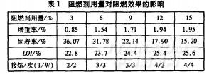 選擇阻燃劑用量3%,6%,9%,12%和15%,按