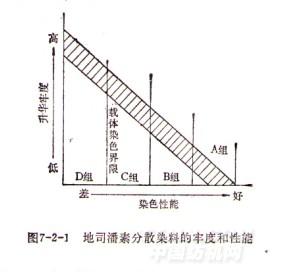 地司潘素分散染料的牢度和性能可用圖7-2-1表示。