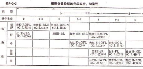 福隆分散染料的升華牢度、勻染性見表7-2-2.