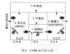 (1)進入CSBR池廢水的BOD5∶N∶P根據生物處理要求進行調整,以確保生物處理對營養的要求。