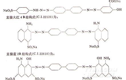 )或羧酸基等水溶性基團,對纖維素纖維具有較大親和力,在中性介質中能直接染色,也能染絲、毛、維綸纖維等,染法簡便的直接染料。但牢度較差,部分染料在染色后,如經固色處理,可提高濕處理牢度。這類染料結構以雙偶氮及多偶氮染料為主,并以聯苯胺及其衍生物占多數。