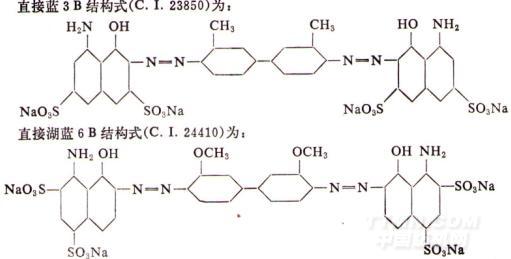 )為偶氮成分的燃料,其顏色均比聯苯胺結構的深,而以聯鄰甲氧胺比聯甲苯胺更深些,如直接湖藍6B就比直接藍3B深。
