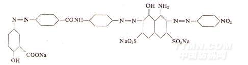例如,直接墨綠NB由4,4’二氮基苯酰替苯胺,一邊偶合成黃色,另一邊偶合成藍色通過酰胺基聯結而成。