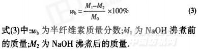 式(3)中:姚為半纖維素質量分數;M。為NaOH沸煮前的質量;M2為NaOH沸煮后的質量.