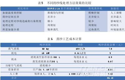 采用XORELLA真空調濕定形機與傳統蒸紗機、加濕房處理紗線的差異如表5所示。