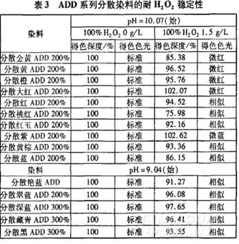 ADD系列耐堿分散染料的耐H202穩定性見表3。