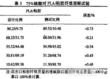 75%硫酸對PLA/粘膠纖維溶解試驗見表1.