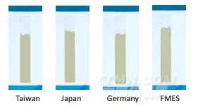 規定時間內測量毛效爬升高度,毛效越高,表明潤濕性越好。