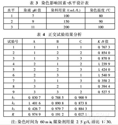 2.3 染色工藝條件正交試驗(yàn)優(yōu)化