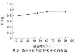 織物的表觀得色量隨染色時(shí)間的變化見(jiàn)圖5。