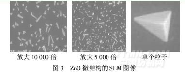 由圖2可見,ZnO粒子平均粒徑在0.25μm左右,粒徑分布相對集中,大致分布在0.13~0.37μm,具有很好的置信度.