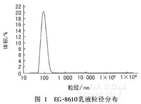 采用激光粒度儀測定EzGard EG-8610乳液粒分布,結果如圖1所示。