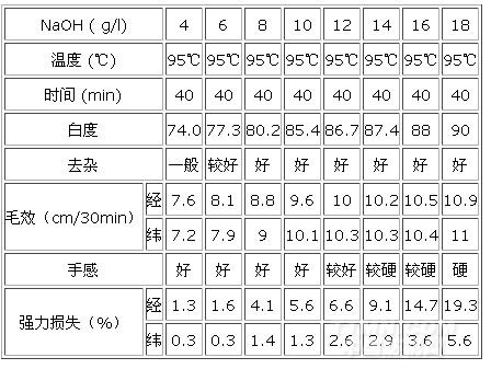 本次實驗在退漿工序我們做了酶退漿、新型低堿煮練劑DKB(宜興新建助劑二廠)退漿與純堿退漿對比實驗。