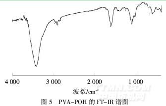 由圖6A知,(1.3~1.4)×10-6(muti,J=44.8 Hz,2H,CH2)和(3.8~3.9)×10-6(d,J=24.4 Hz,1H,CH)分別為主鏈上的—CH2—和—CH—峰,而PVA-POH中OH的化學位移在4.1×10-6(s,1.3H,—OH).由羥基的峰面積與CH的峰面積可計算出磷酸的酯化率為:[(1.29-1.00)/1.00]×100%=29.0%,由此推斷出m∶n=2.45∶1,PVA-POH結構式如下: