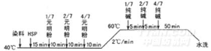 將5g的染色純棉針織布樣及漂白布樣(沾色樣)置于同一皂洗浴中進行皂洗。以白布為標準,利用電腦測色配色儀測定沾色樣并評級。級別越高,說明該皂洗粉(劑)的防沾色能力越強;反之則越差。