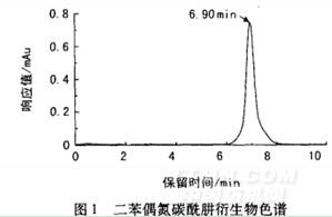 以2.4節(jié)確定的色譜參數(shù)條件,二苯偶氮碳酰肼衍生物在色譜圖中保留時間tR=6.90min處出峰,分離色譜圖見圖1。