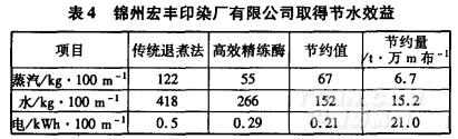 錦州宏豐印染廠有限公司采用該工藝后節水效果明顯(見表4)。