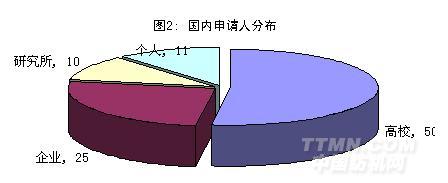 專利申請人:我國集中于高校,國外集中于企業
