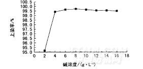 圖2氫氧化鈉質量濃度對上染率的影響