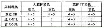 表3載體TT對腈氯綸染色織物色牢度的影響/級