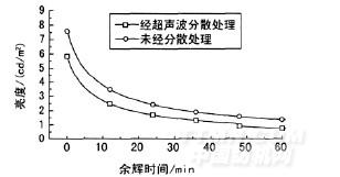 注:夜光涂層漿超聲波振蕩條件:溫度25℃,超聲波每次處理時(shí)間2s,間隔5s,全程時(shí)間30min。