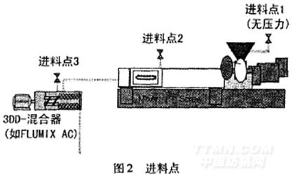 IBCs(中型散裝容器,intermediatebulkcontainers)是可替代20~100L染液槽的貯存器,最大容量1000L。一般,染料消耗量大的大型客戶系統需要IBCs。IBCs沒有配備集成液壓泵,而是在外部裝有泵機組。從染液槽到擠出機的無壓區(漏斗區),客戶需要的預混合染料可以被直接計量。相反,如果預混合染料被注入到擠出機的壓力區,或進入到下游熔體管道,則每個染液槽的液壓泵應與OerlikonBarmag公司的INJECTAC高壓系統相連。注入染料時,該系統可精確施壓,最高壓力達300×lo'Pa。使用原色染料可獲得最高的效率。這些染料通過染料槽的泵組被傳輸到OedikonBarmag公司開發的“擴展站”。在擴展站中,所有的原染料在一個動態型的“FLUMIXAC攪拌機”內混合,得到最終的染料。然后,這些染料經由染料槽的泵組直接計量送人擠出機的無壓區,或使用下游的INJECTAC系統進入熔體管道內。