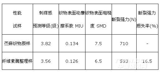 表 3 苧麻織物纖維素酶整理前后刺癢感及斷裂強力對比