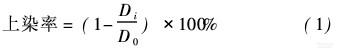 采用UV-2100型紫外分光光度計,在可見光波長λ1=595 nm(活性艷藍(lán)KN-R),λ2=420 nm(活性金黃B-4RFN)條件下,測試染色殘液的吸光度,按式(1)計算上染率: