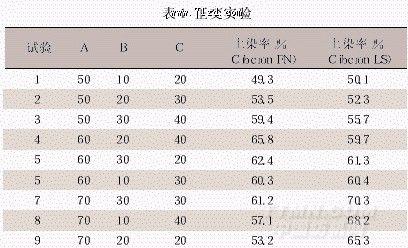 通過對(duì)極值求極差,結(jié)果示于表2。可以看出,在活性染料cibcron fn上染過程中,上染溫度影響顯著,其次是元明粉的用量和上染時(shí)間。而對(duì)于活性染料cibcron ls也是上染溫度的影響顯著,上染時(shí)間和元明