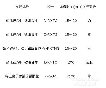 各種發(fā)光材料的余輝時(shí)間和發(fā)光顏色