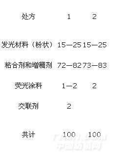 (2)粘合劑:用于夜光印花的粘合劑有油性和水性二種,油性漿較能獲得穩(wěn)