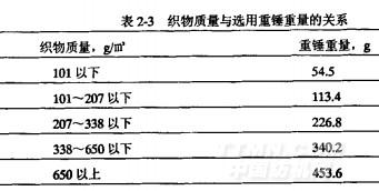 (9)打開觀察門,取出試樣夾,卸下試樣,先沿其長方向炭化處對折一下,然后在試樣的下端~側(cè),距邊、底各約6mm處,用鉤掛上與試樣單位面積重量相稱的重錘,詳見GB/T5455.1997《紡織品織物阻燃性能測定垂直法》標準中第3.7條選用重錘重量見表2-3㈣。