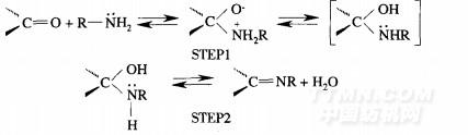 采用高碘酸鈉氧化竹原纖維素,可切斷纖維素葡萄糖基環上的C2-C3化學鍵,竹原纖維葡萄糖環C2、C3位上的C—OH被氧化成了c=0,竹原纖維被高碘酸鈉選擇性氧化成2,3一二醛基纖維素.且二醛基纖維素上的醛基隨著氧化程度的加深而不斷增多,氧化后纖維素大分子中的羥基及氫鍵結構逐漸減少.選擇性氧化生成的醛基活性很大,具有與絲膠蛋白分子鏈中氨基形成共價結合的能力.絲膠蛋白與氧化竹原纖維間的席夫堿反應分2步,通常第一步反應容易進行,即絲膠蛋白中的氨基與氧化纖維素上的醛基形成亞胺結構(c—N),而第二步的C=N結構要經過還原等處理才能得到.其反應原理如下: