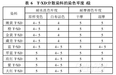 (6)T-XD系列分散染料所染滌綸織物的耐洗色牢度、耐摩擦色牢度俱佳,可進一步用以篩選高牢度系列的堿性浴染色分散染料。