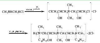 其反應步驟為:0.22mol環(huán)氧氯丙烷慢慢加入到0.10mol二甲胺鹽酸鹽與70mL乙醇的混合物中,室溫下攪拌36h,蒸去未反應的環(huán)氧氯丙烷和溶劑,得到無色透明的高粘性液體,即為中間產(chǎn)物.取0.006mol中間產(chǎn)物、0.024mol十二烷基二甲基胺和25mL乙醇混合加熱回流24h,減壓蒸去溶劑得到蠟狀物,用己烷洗滌,再用丙酮重結(jié)晶,即得到白色的含氨基聯(lián)結(jié)基的陽離子型Gemini表面活性劑.[24]
