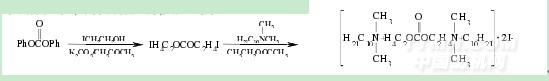 TAISUKEB[31]等人合成了一種含羰基結構的碳酸酯聯結基陽離子型Gemini表面活性劑.將321.3g碳酸二苯酯、980.2g 2-碘乙醇、642.6gK2CO3加入到5mL丙酮中,在常溫下攪拌反應48h.反應結束后用硅藻土濾紙濾掉未反應的K2CO3,減壓蒸發掉丙酮,通過凝膠色譜法純化后,即得對2-碘乙基碳酸酯.含羰基結構的碳酸酯聯結基陽離子型Gemini表面活性劑是由0.33mmolN,N-二甲基-10-烷基胺和0.15mmol對2-碘乙基碳酸酯在1.5mL乙酸乙酯中反應合成的,反應在80℃攪拌72h.通過減壓去除溶劑和氯仿沉底提純后,即得目標產物,反應式為: