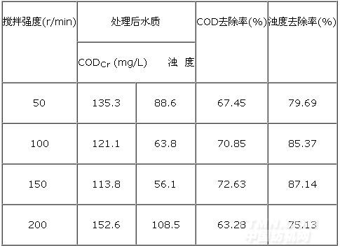 表4 攪拌強度對CODCr、濁度去除率的影響