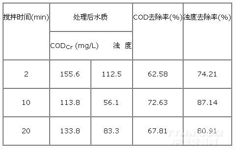 表5 攪拌時間對CODCr、濁度去除率的影響