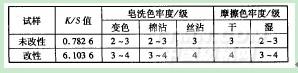 表7列示了未改性和改性棉織物采用優化姜黃染料染色工藝條件所得的K/S值和染色牢度。
