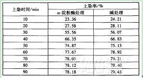 表2生物酶處理對(duì)織物上染率的影響