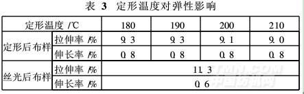 其它條件同上,定形時間20 s,定形溫度對彈性的影響見表3。