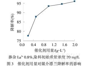 催化劑用量對媒介漂蘭降解率的影響見圖3.