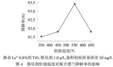 催化劑焙燒溫度對媒介漂蘭降解率的影響見圖4.