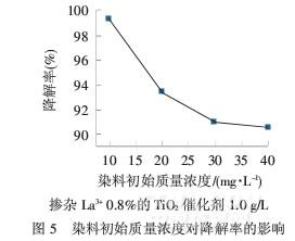 染料初始質量濃度對降解率的影響見圖5.
