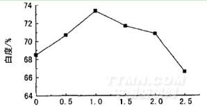 圖7雙氧水質量濃度對織物白度的影響