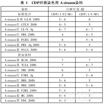 針對(duì)CDP纖維的特性,德司達(dá)公司開發(fā)了一套用于CDP纖維染色的染料,如表1所示。