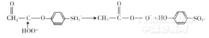 醋酸(酐)類化合物的活化機理屬于第二類,即醋酸(酐)類化合物與HOO-發生SN2親核取代反應生成比H2O2更活潑的漂白劑———過氧乙酸陰離子,從而提高了漂白效率。對-醋酸基苯磺酸鈉發生以下反應: