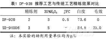 DP-928與傳統(tǒng)多功能精練劑[4]的精練效果進(jìn)行對(duì)比