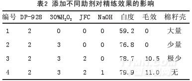 2.2.1添加不同助劑對(duì)精練效果的影響