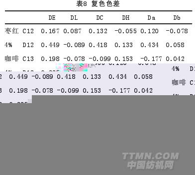 由表7、8可知:活性黃總色差DE超過1,其它DE誤差都小于1;DL、DC、DH、Da、Db誤差都很小,DP-928復合酶與傳統精練劑比較近似,中深色中溫精練劑相對接近傳統精練劑,DP-928復合酶中深色偏深視覺上評級達到4~5級。